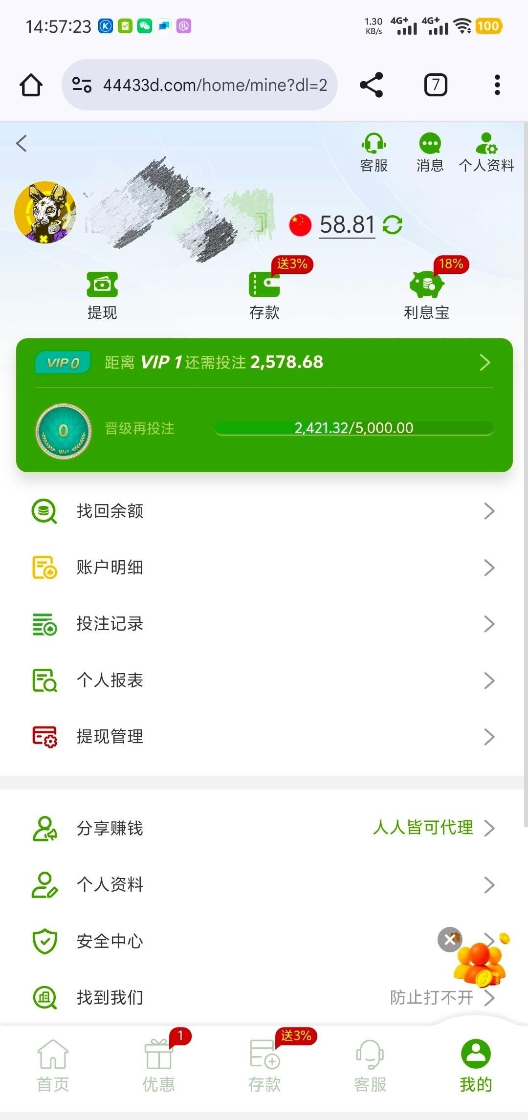 我是今天来电话注册说送58  就不知道没充值过能不能出款